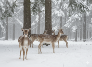 Rehe und Hasen finden selbst unter der Schneedecke noch Gräser und Rinden.